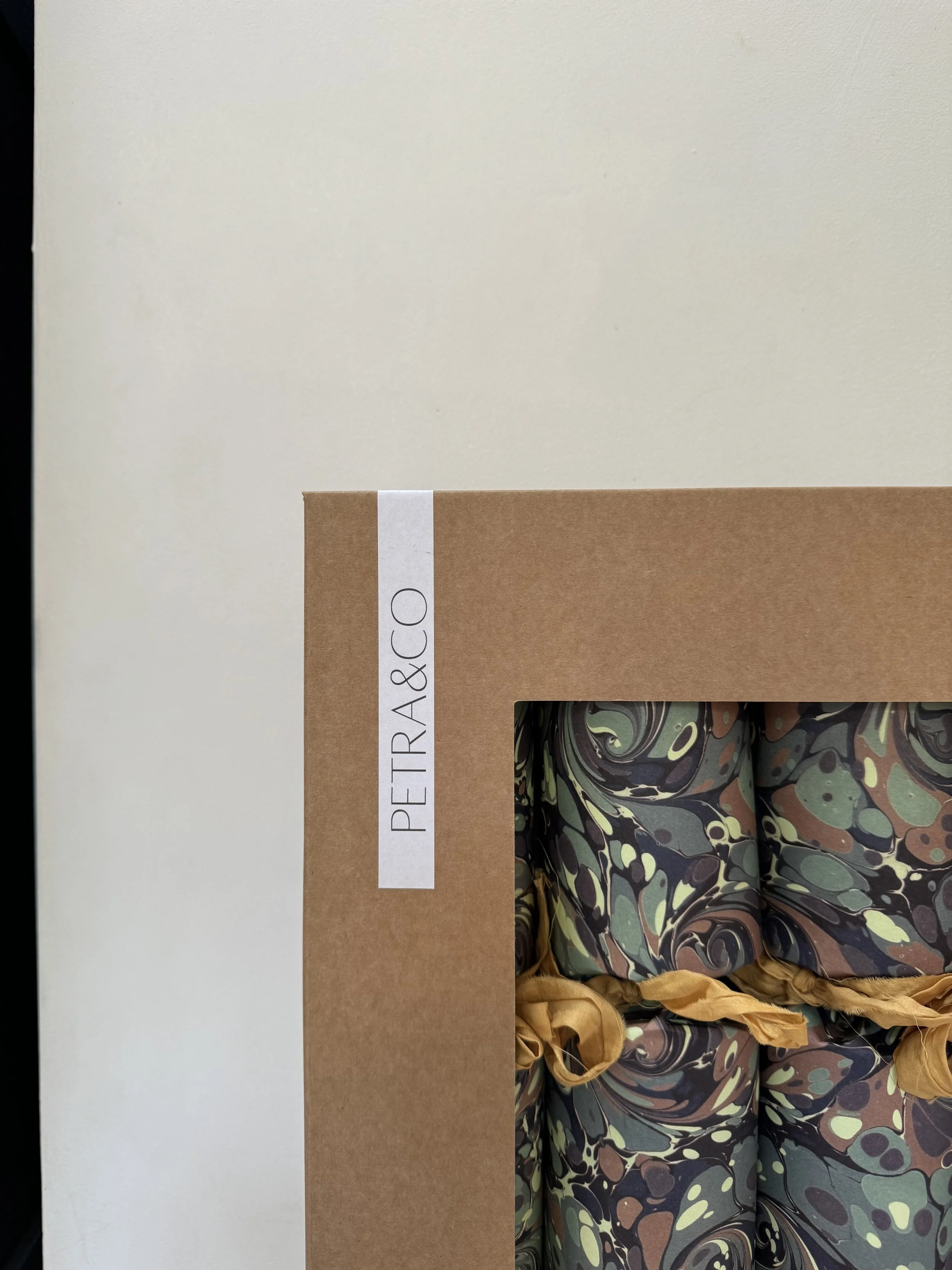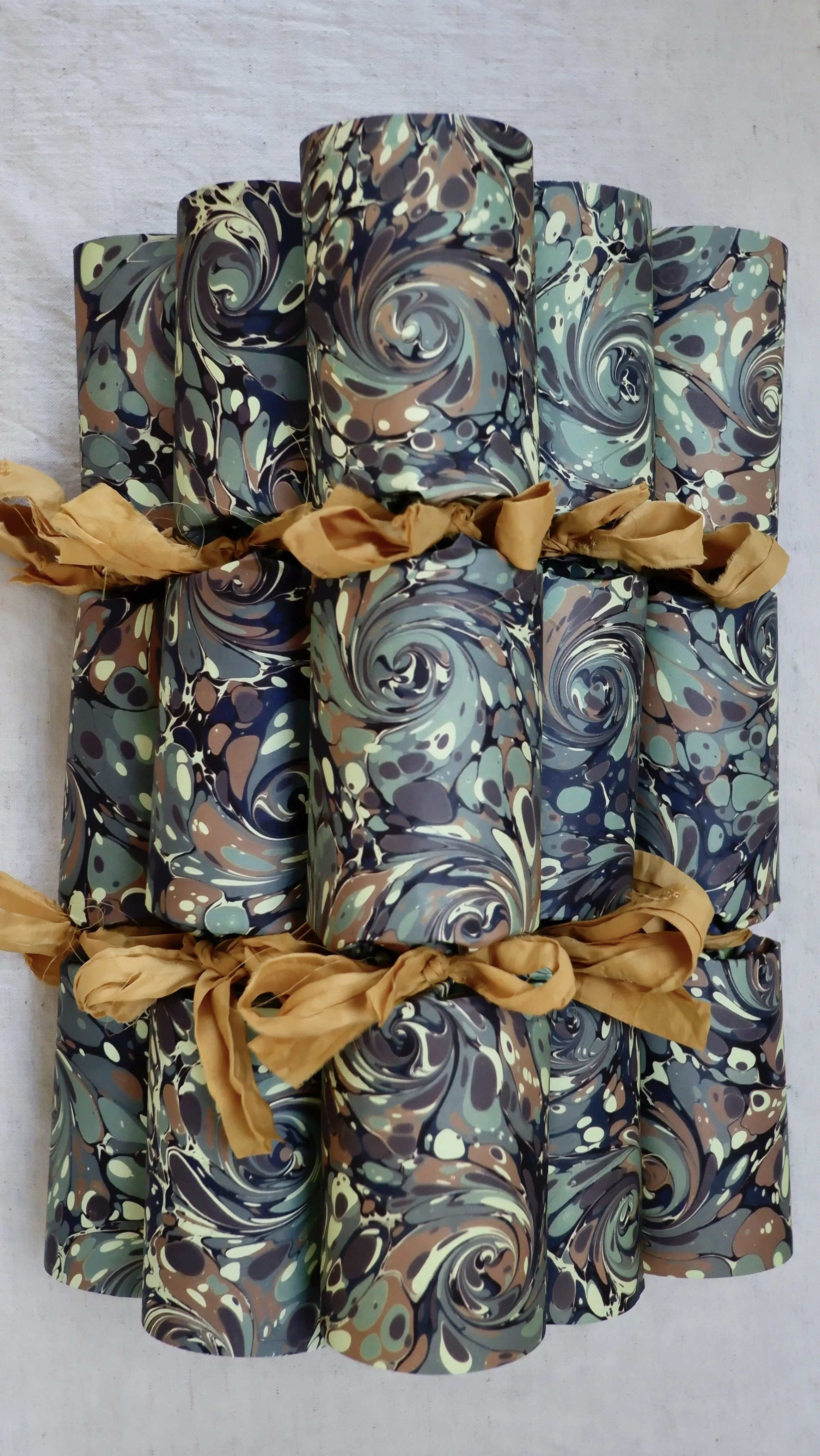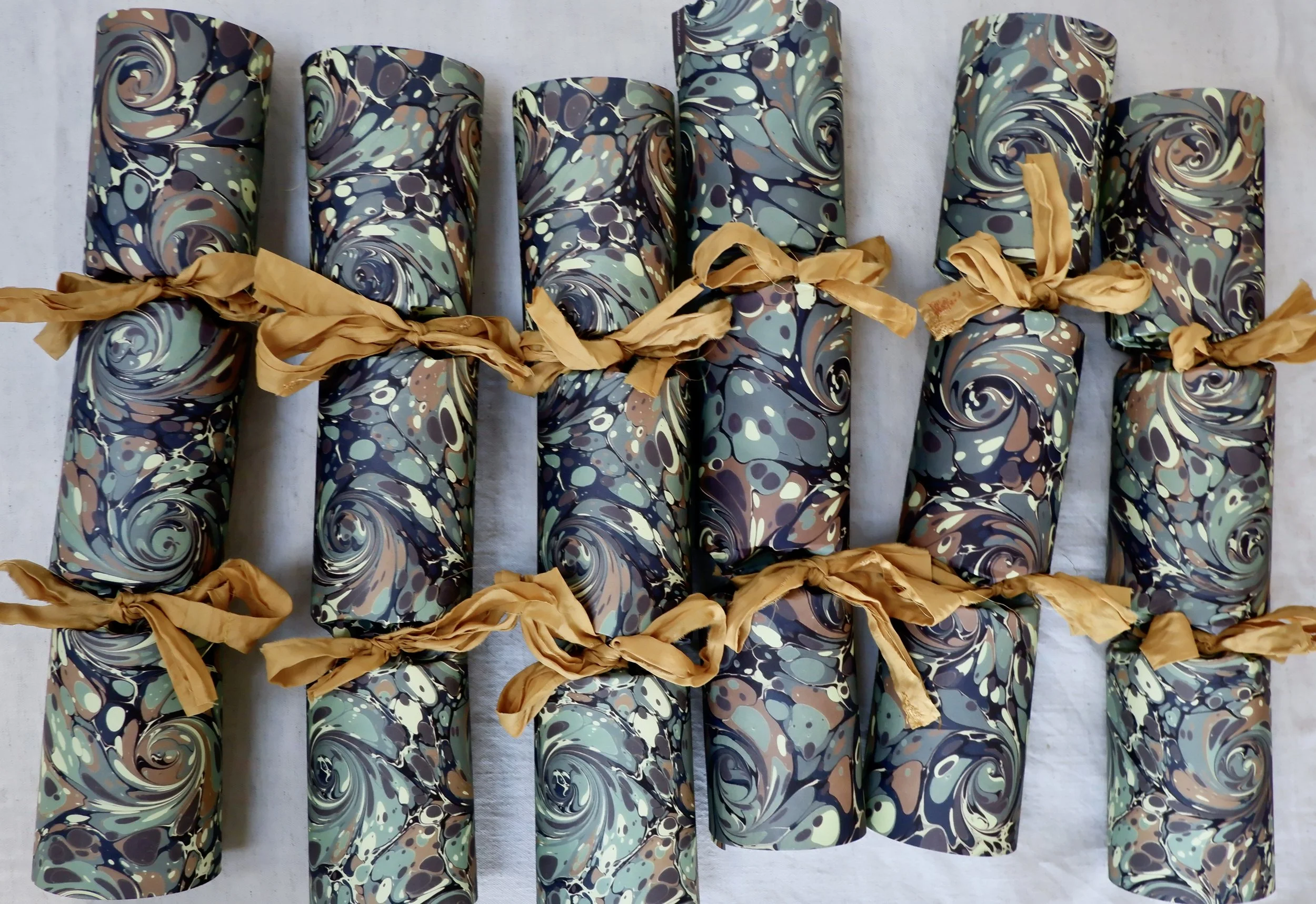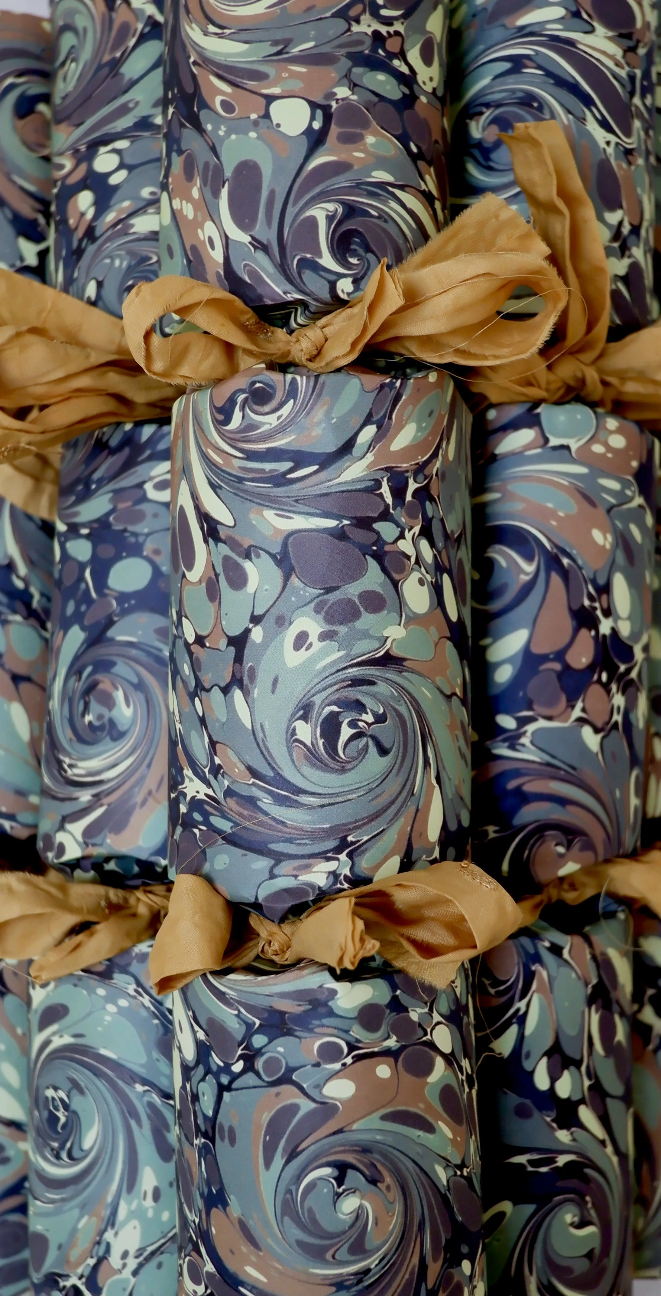 Add a touch of beauty and craftsmanship to your festive table with these handmade Ammonite Marbled Christmas crackers, created with care and attention to detail.