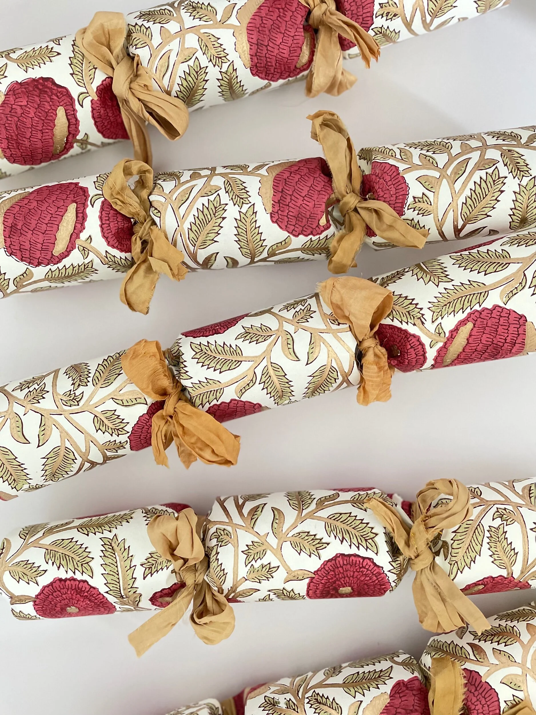 A box of 6 beautiful Marigold Glitz Christmas crackers, which will add a touch of beauty to your Christmas table. They are handmade, eco, plastic free.